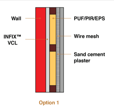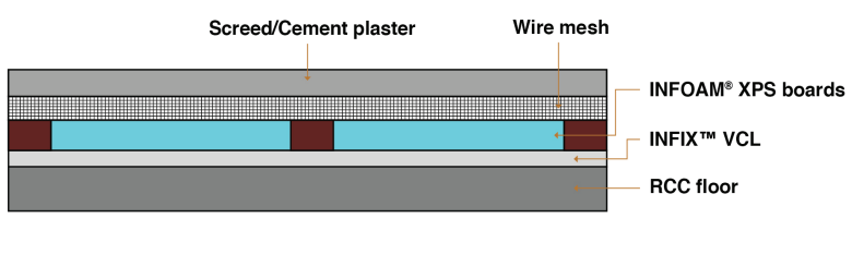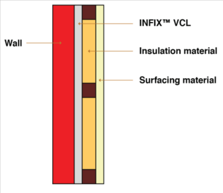 - INFIX TM VCL is self adhesive and can be directly applied to wall and floor surface for moisture control purpose before further application of other layers of insulation material.