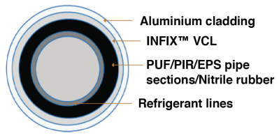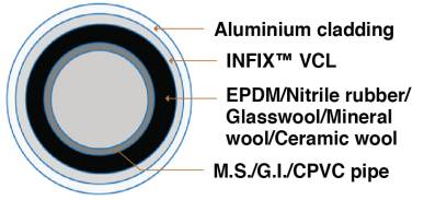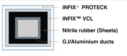 - INFIX™ VCL can be used as a protective layer over insulation material applied over piping/ducting. It will act as a moisture barrier and radiant heat resistant layer.