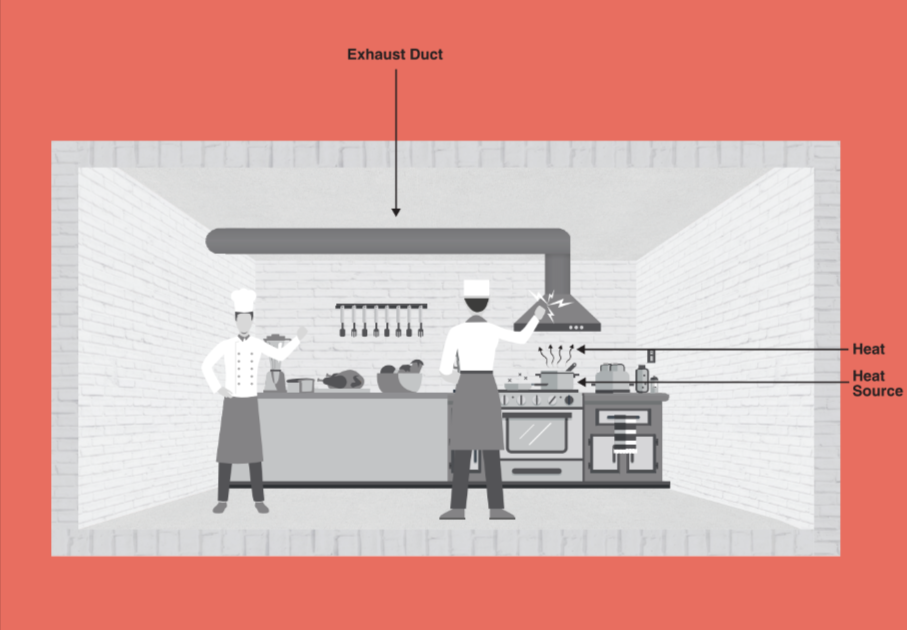 Ducts kitchen vent out various food aromas. Commercial kitchens may have a hood over the cooking area. The hood may get heated up due to its constant exposure to flame and various gases. This heat is transferred to the entire exhaust duct again. Usually such ducts are at an accessible level to humans. If someone touches these ducts accidentally or to clean them, it can lead to serious burn injuries.
